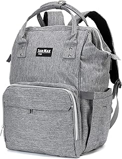 Sac à dos à langer Jan Max Baby, sac à langer, sac à couches avec matelas à langer et port USB pour hommes et femmes, gris