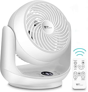 Amzdeal Ventilateur de table avec télécommande et minuterie 0-9H Fonction de terminaison de l'air Ventilateur de table 3D oscillant 9 niveaux de vitesse d'air pour le salon, pièce