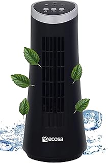 OPUS 2 Mini Tour Ventilateur de Table - Portable Petit Ventilateur pour Bureau, Salon, Maison, Tables De Chevet - Oscillation Ventilateur Silencieux avec 2 Niveaux de Vitesses - Noir - 31,2 cm