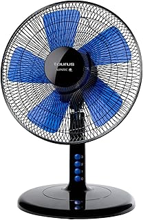 Taurus Boreal 12 Legend - Ventilateur de table portable. Ventilateur de bureau noir/bleu. Système d'oscillation/inclinaison. 5 lames. Diamètre 30cm. 45W. Base ronde antidérapante. 3 vitesses.