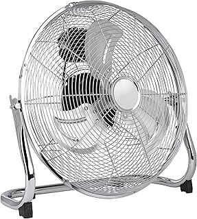 Slabo Ventilateur de Sol chromé | Ventilateur de Table chromé | Machine à Vent à 3 Niveaux de Puissance | Ventilateur de Sol avec Support Robuste | Style rétro 75 Watt Ø 45 cm - Argent