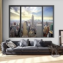 murando 3D ILLUSION D'OPTIQUE 210x150 cm Papier peint intissé tableaux muraux déco vue depuis la fenetre Ville City New York Panorama
