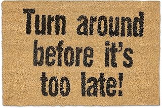 Relaxdays Paillasson en fibres de coco tapis de sol porte entrée TURN AROUND before it's too late dessous antidérapant en caoutchouc PVC 60 x 40 cm nature