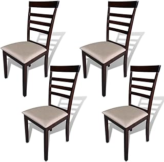 vidaXL Bois Massif 4X Chaise de Salle à Manger Marron Crème Chaise de Cuisine
