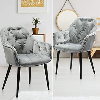 DICTAC Chaise de Salle à Manger lot de 2, Chaise de Cuisine Velours Chaise fauteuil de salle à manger en tissu, Gris Chaise rembourrée, Pieds en métal noir