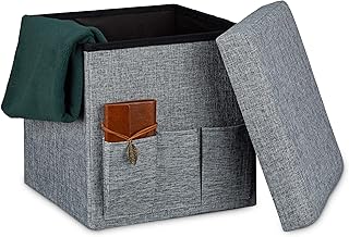 Relaxdays Tabouret de rangement HxlxP: 42 x 40,5 x 40,5 cm boîte en tissu optique lin, gris