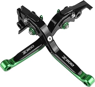 Moto Réglable Pliable Leviers d'embrayage de Frein CNC Aluminium pour Kawasaki Z800 Z800E 2013-2017-Noir+Noir+Vert+Vert