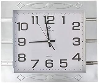 Grand 40cm X 35cm Rectangle Horloge Murale Cadre Argenté avec Brillant Argent Rayures
