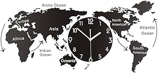 VOSAREA Carte du Monde Horloge Murale Acrylique Pendaison Murale Horloge personnalisée Montre de Mode Horloge décoration Murale pour Salon Chambre sans Batterie (Taille l)