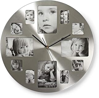 Nedis Horloge Murale Horloge Murale | Diamètre: 400 mm | Cadre Photo | Métal Argent