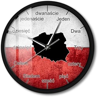 DFERT Horloge Murale Cadre en Métal Polonais Horloge Murale Patriotique Pologne Drapeau Carte Horloge Murale Lumineuse Commande Vocale Intelligente Montre Design Moderne Art À La Maison