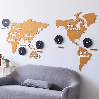 Horloge Murale Créative À La Mode Européenne 3D en Bois Carte du Monde Grand Salon Bureau Chambre Décorative Sticker Mural Horloge (Longueur 220 Cm * Hauteur 105 Cm),#2,A