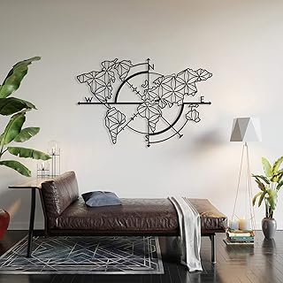 BAUPOR Design Unique Carte du Monde en métal Carte du Monde Décoration Murale en métal Décoration Murale 3D en métal Sculpture Murale en métal décor (96x62cm)
