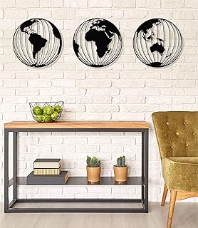 3 globes en métal - Carte du monde ronde en métal - Décoration murale en métal - Plaque en métal - Design intérieur - Carte du monde - Mappa Del Mondo