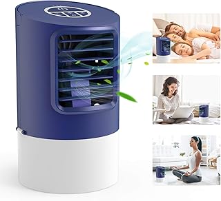 Climatiseur, TedGem Climatiseur Mobile, Mini Climatiseur Portable, 4 en 1Mini Climatiseur USB, Humidificateur, Ventilateur de bureau, 7 Lumières LED, 3 Vitesses avec Poignée pour Maison Bureau(Bleu)