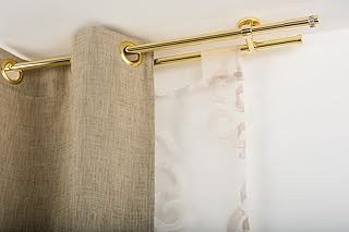 Double Tringle á Rideaux: Ø 20 mm sans Anneaux, L. 160 cm. en Laiton Poli – Complet