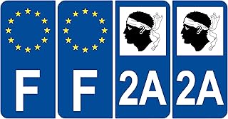Supstick 4 Stickers Autocollants Plaques Immatriculation Auto Dept 2A Corse Bleu Foncé Angles Arrondis