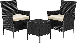 VONLUCE Meubles de Mobilier d’Extérieur 3Pcs, Salon de Jardin Rotin, 2 Chaises du Porche et 1 Table de Thé pour Jardin Extérieur Terrasse Toutes Les Saisons