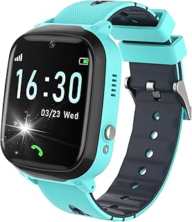Montre Connectée Enfant, Montre Telephone avec Jeux de Puzzle Lecteur de Musique Appareil Photo Mode école SOS Bracelet Montre à écran Tactile pour Filles et Garçons Cadeau Anniversaire (Bleu)