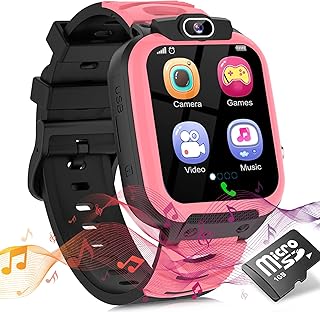Montre Connectée Enfant, Montre Telephone avec Jeux de Puzzle Lecteur de Musique Appareil Photo Mode école SOS Bracelet Montre à écran Tactile pour Filles et Garçons Cadeau Anniversaire (Rose)