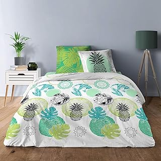 UNIVERS-DECOR Pack Complet 6 pièces Housse de Couette pour lit 180 x 200 cm King Size 100% Coton / 57 Fils/cm² (Ananas anis, Pack 6 pièces Housse de Couette 240 x 260 lit 180)