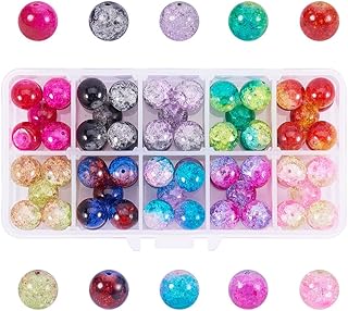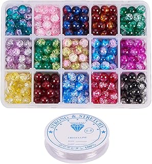 PandaHall Elite - 450pcs Pcs 15 Couleurs Perles de Verre Craquelées Perles Craquelées Rondes 8mm Perles Peintes par Pulvérisation avec 0.8mm Fil de Cristal pour DIY Bijoux Collier Bracelet