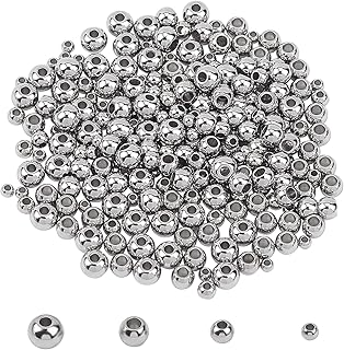 UNICRAFTALE 400 pièces 4 Tailles 3mm / 4mm / 5mm / 6mm Perles D'Espacement Rondes 304 Perles en Vrac en Acier Inoxydable Petit Trou Perles D'Espacement pour la Fabrication de Bijoux, Trou 1~2.5mm