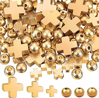 120 Pièces Perles d'Espacement en Métal Perles d'Espacement en Forme de Croix Or Perles Rondes Dorées Perles à Gros Trous Bijoux Breloque Perles en Vrac pour Noël Saint Valentin Bracelet Collier