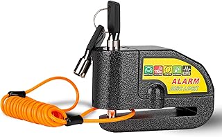 Linkax Cadenas antivol moto bloque-disque avec alarme sonore, 110 dB, alarme de frein à disque, antivol pour moto, vélo et scooter, verrouillage de sécurité avec 2 clés et câble de 1,5 m