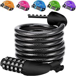 Looxmeer Chaîne Antivol Vélo, Cadenas de Vélo, 180cm Câble Antivol pour Vélo/Scooter/Motos/Portail Vélo avec 5 Chiffres Intelligente Code, Verrouillage à Vélo Antivol